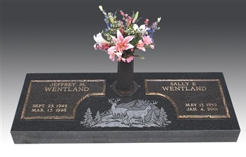 The Devotions collection are accented with a sandblasted carving of your loved one’s love for the outdoors. This design comes with a deer scene. Comes as an Individual and Companion Memorial.
